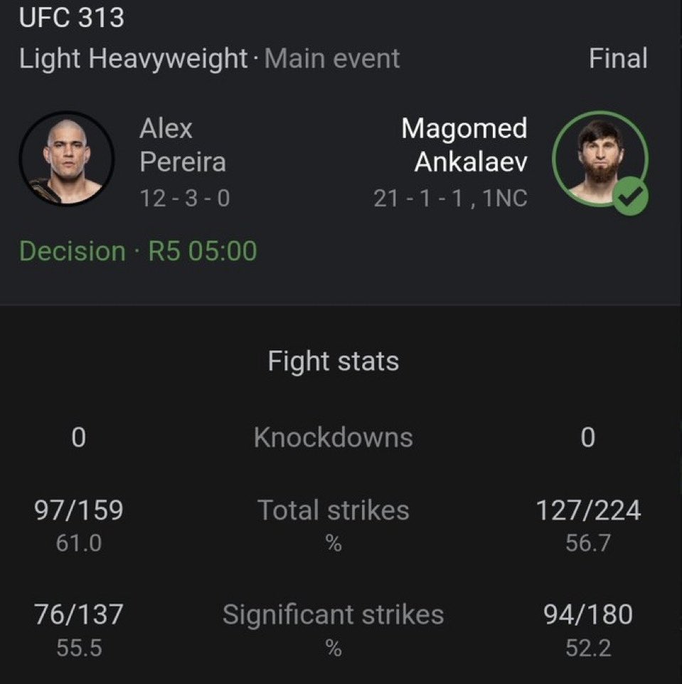 I know a guy that trains in Vegas, a big guy that wrestled in college, and he’s trained with Ankalaev multiple times and he told me Ankalaev has terrible wrestling and won’t be able to take pereira down. So I’m not sure why anyone thought Ankalaev was a big threat on the ground