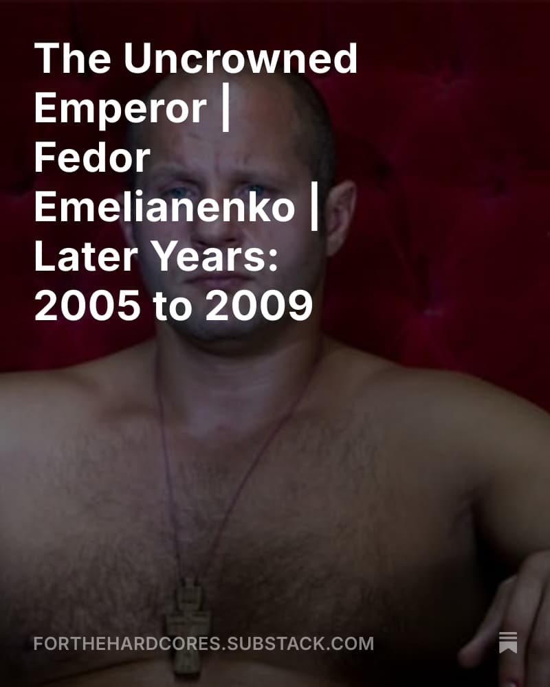 Iâm re-dropping my old articles, Iâm trying to get them a little more visibility, and have them in a nicer format. So each old one I re-post on Substack I will post here, and some with pre-publish dates. Hereâs my work on Fedor, I have it set to publish on 7/25 (all you will see is a picture of Fedor until then):