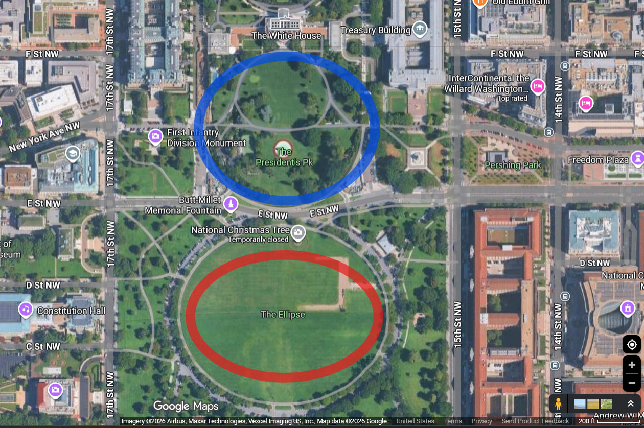 yeah the event is on the lawn (blue circle) and the tickets are for the Ellipse (red circle)