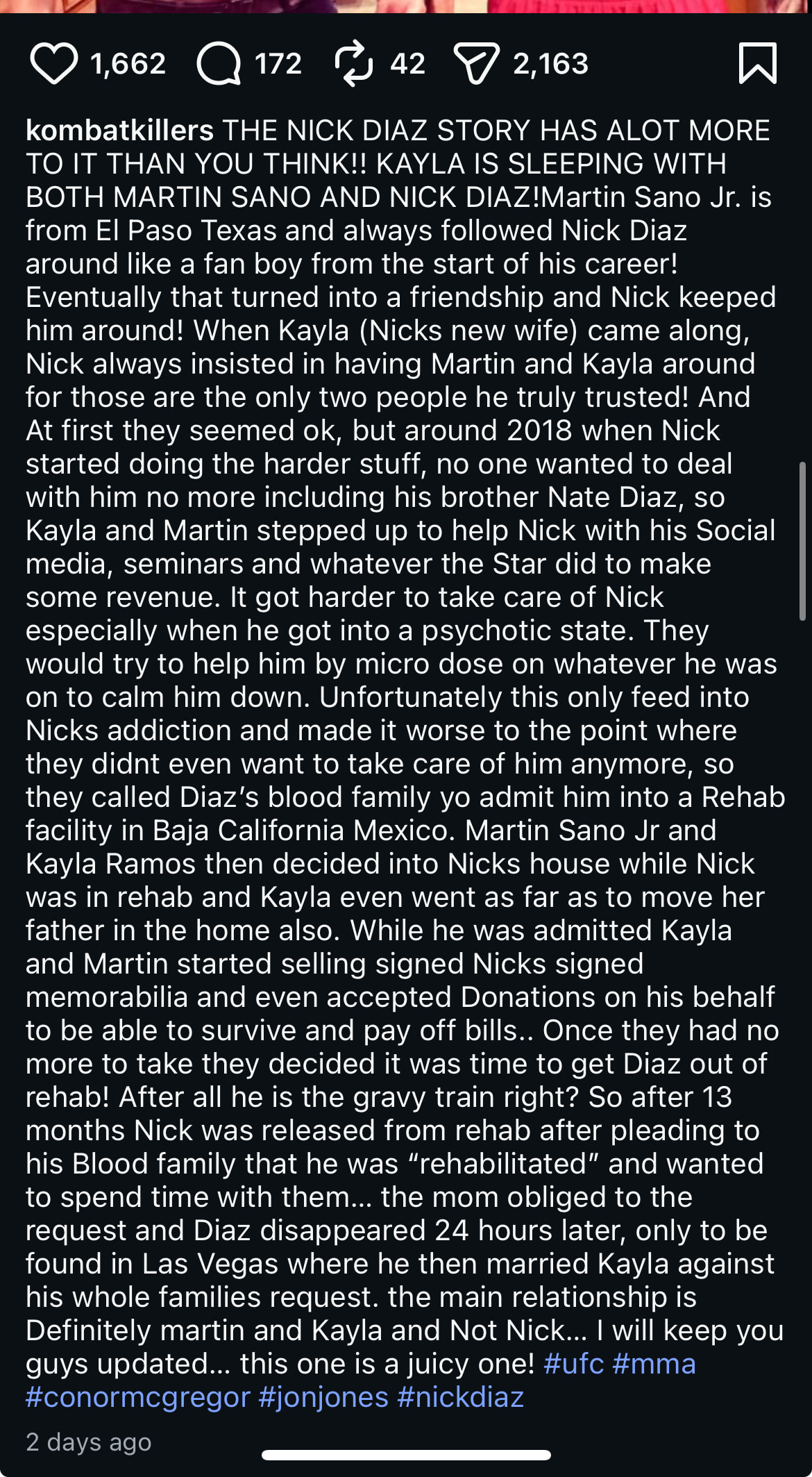100% This right here. You nailed it. I think He will really regret this. I feel bad for him. I’ve fought on the same card as the Diaz Brothers before and they’ve always been super cool in person. The first time I ever met Nick he walked up to me stuck out his hand and said ‘Hi I’m Nick’ lol.. I said Yes Nick I know who you are..