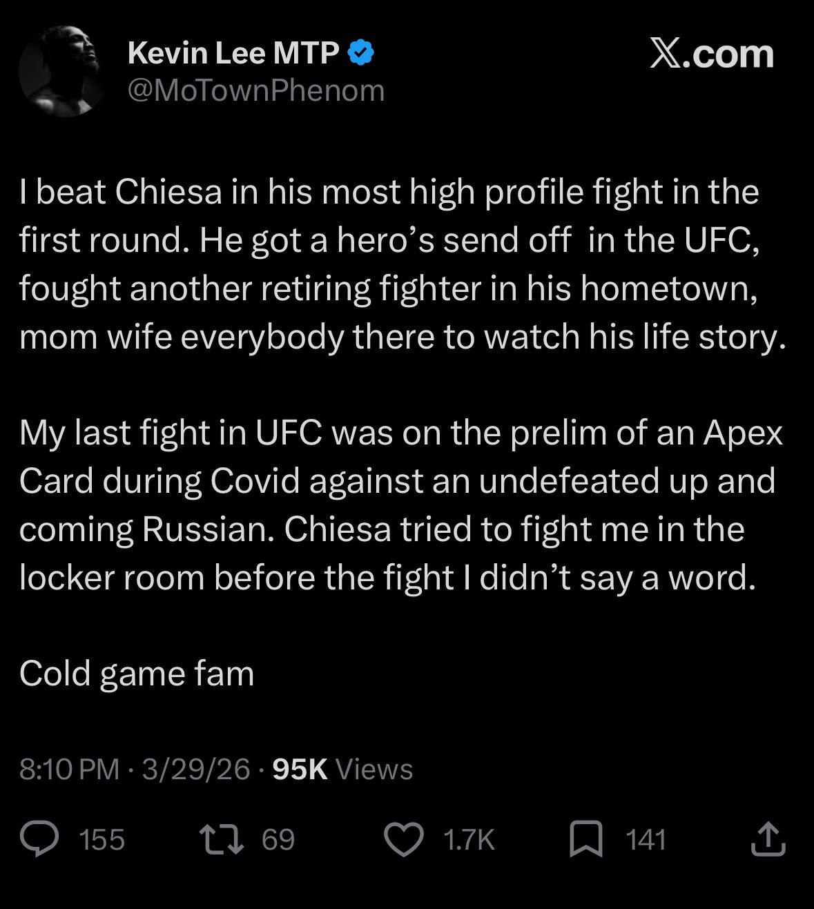 I don’t necessarily agree with that. I think Chiesa is just the better fighter especially at this stage