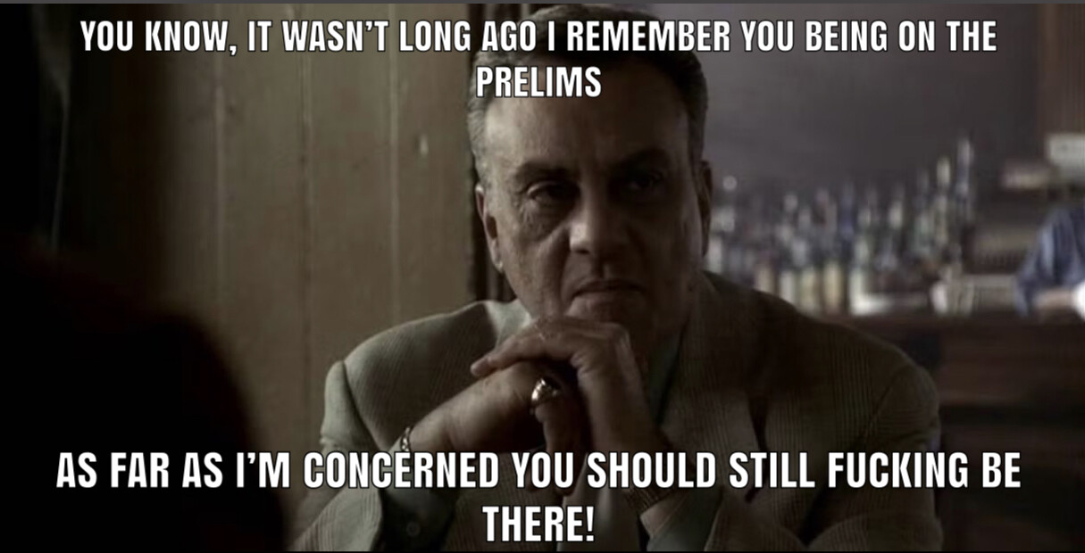 Good card. Heâs lucky to be headlining the prelims. There are a few other fights he should be below.