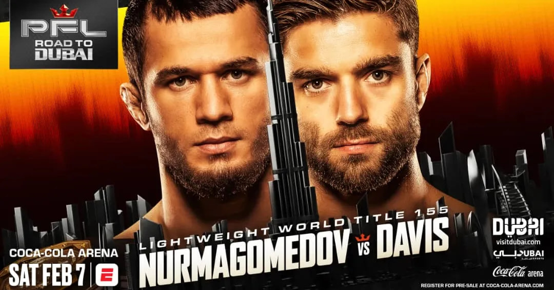 The event will be headlined by PFL Lightweight Champion Usman Nurmagomedov (20-0-0, 1 NC), who returns to Dubai to defend his title against 2025 PFL Lightweight Tournament Champion Alfie Davis (20-5-1). In the co-main event, the last man to hold the Bellator Welterweight title, Ramazan Kuramagomedov (13-0), faces 2024 PFL 170-pound champion Shamil Musaev (20-0-1) in a five-round bout for the PFL Welterweight strap.
