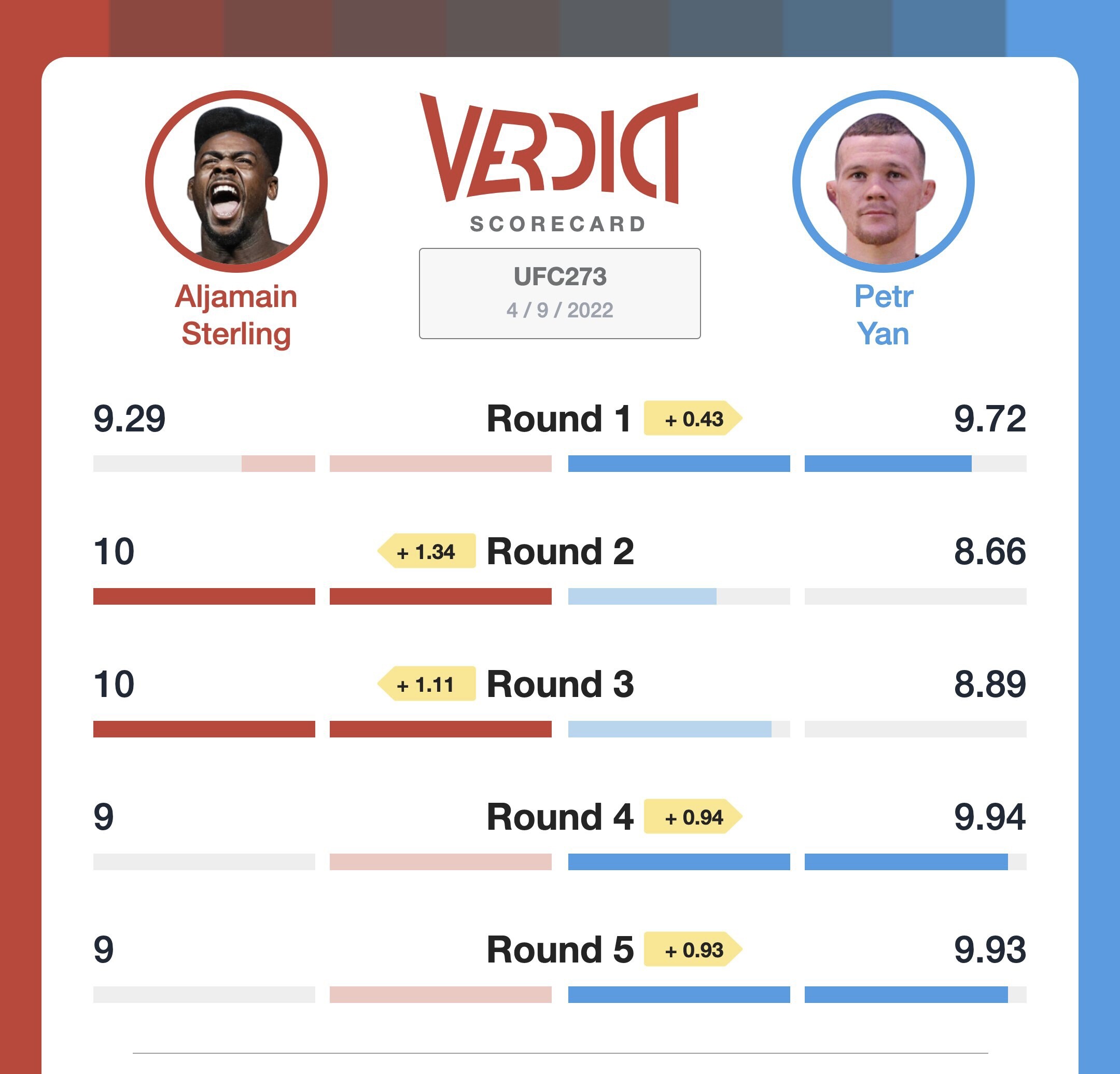 The rematch was a close fight. Sterling was gifted a split decision “win” but many including myself gave Yan 1 4 5