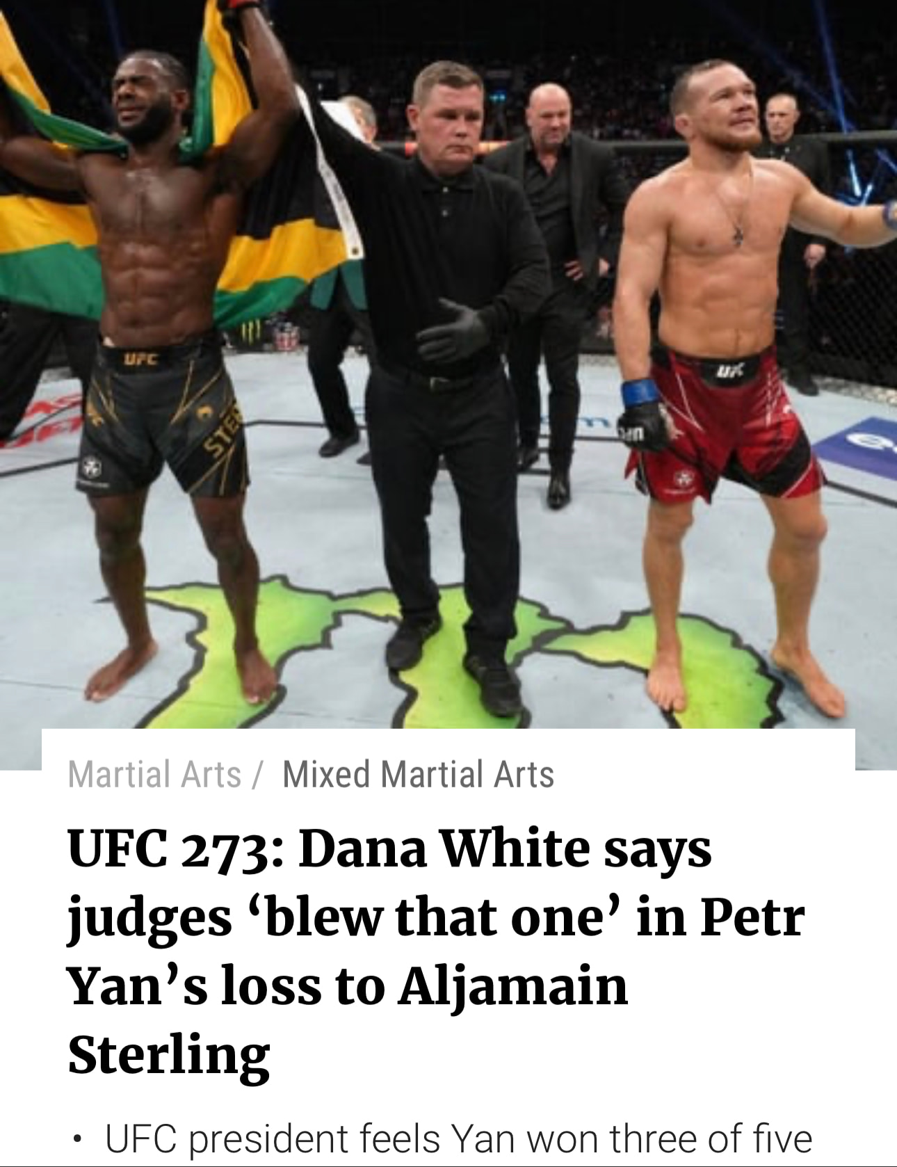 The SO’M fight; second biggest robbery in ufc history. Yan won all 3 rounds and dominated. The judges gave it to the rainbow hair cuck because of anti Russia bias at the time and he was supposed to be a star for the company